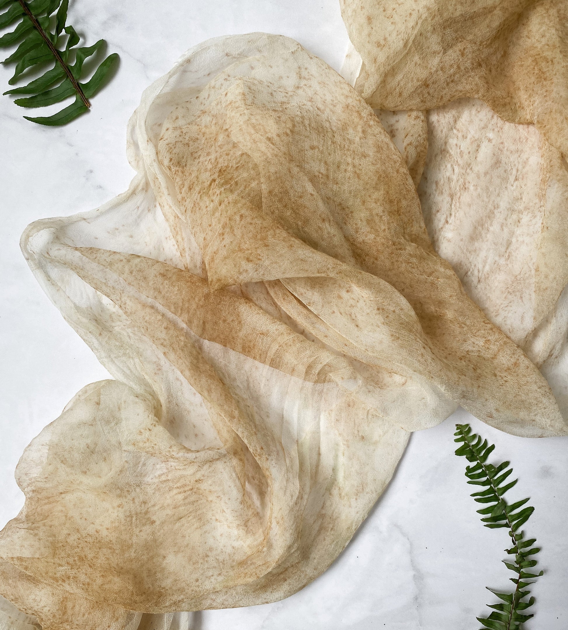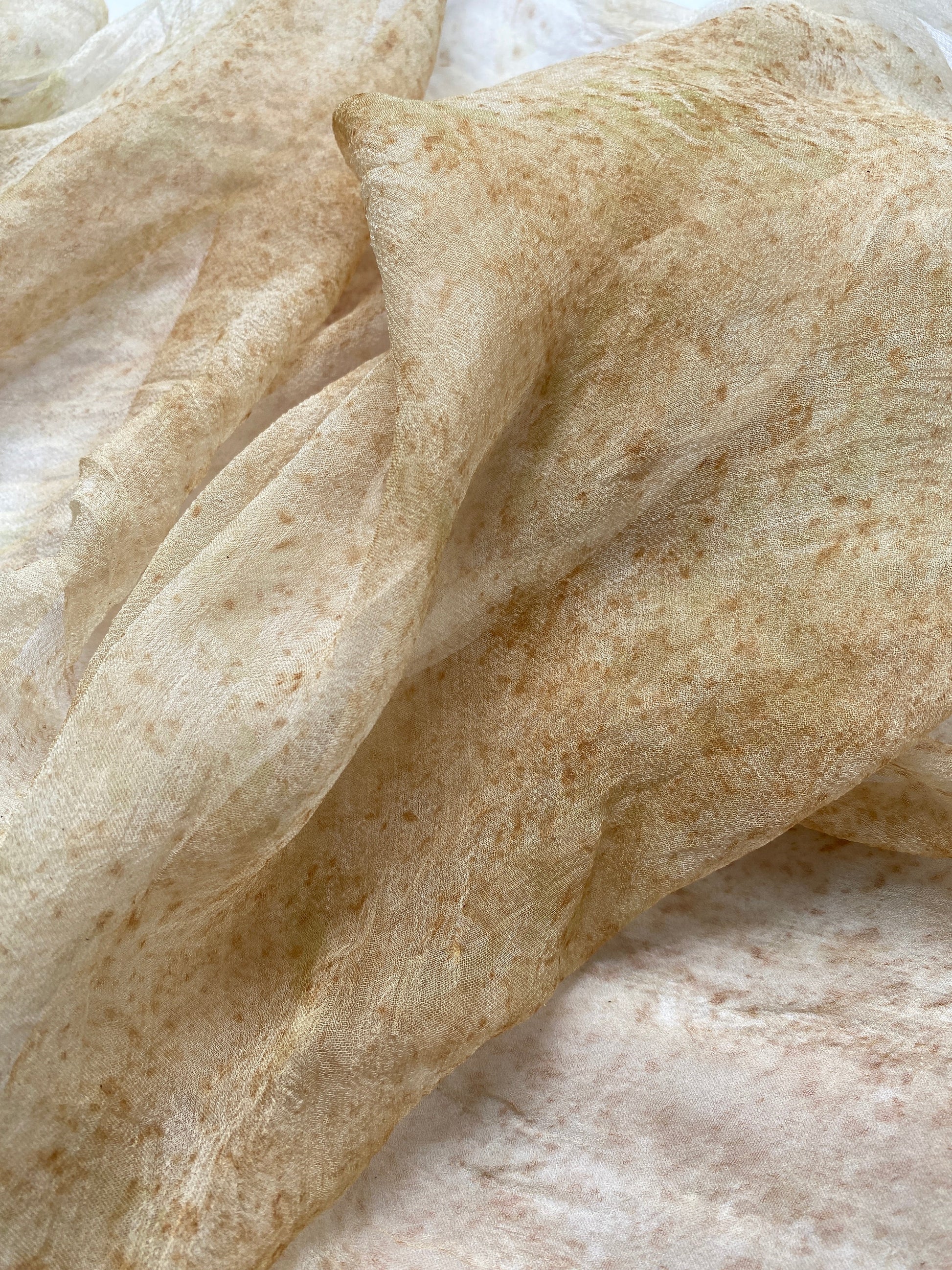 ¡Esté camino es único! Lo teñimos con té negro y helecho. Contiene tonos tierra con toques de verde.