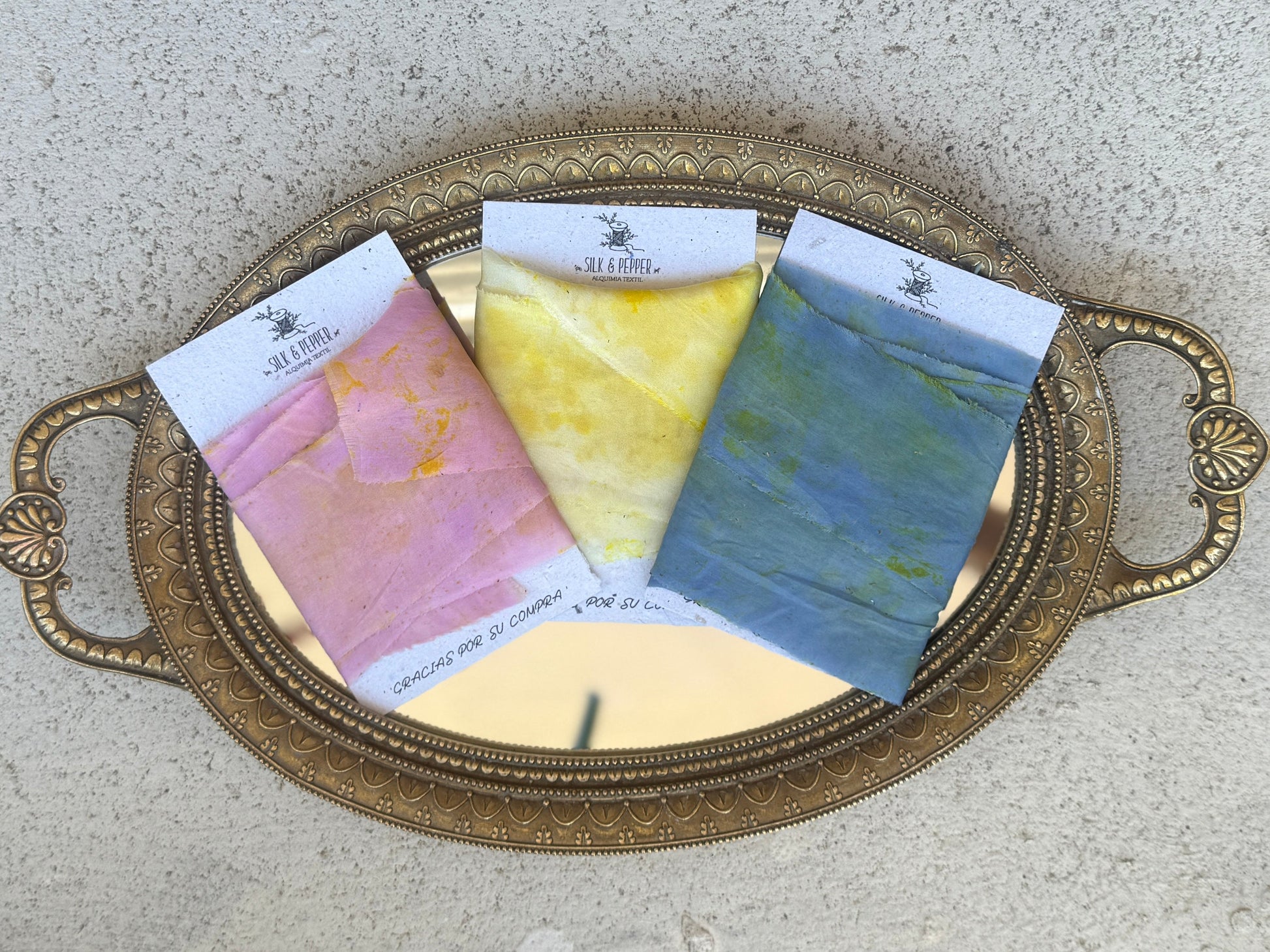 Majestuosa Seda tipo Habotai con técnica de teñido Ecoprint.