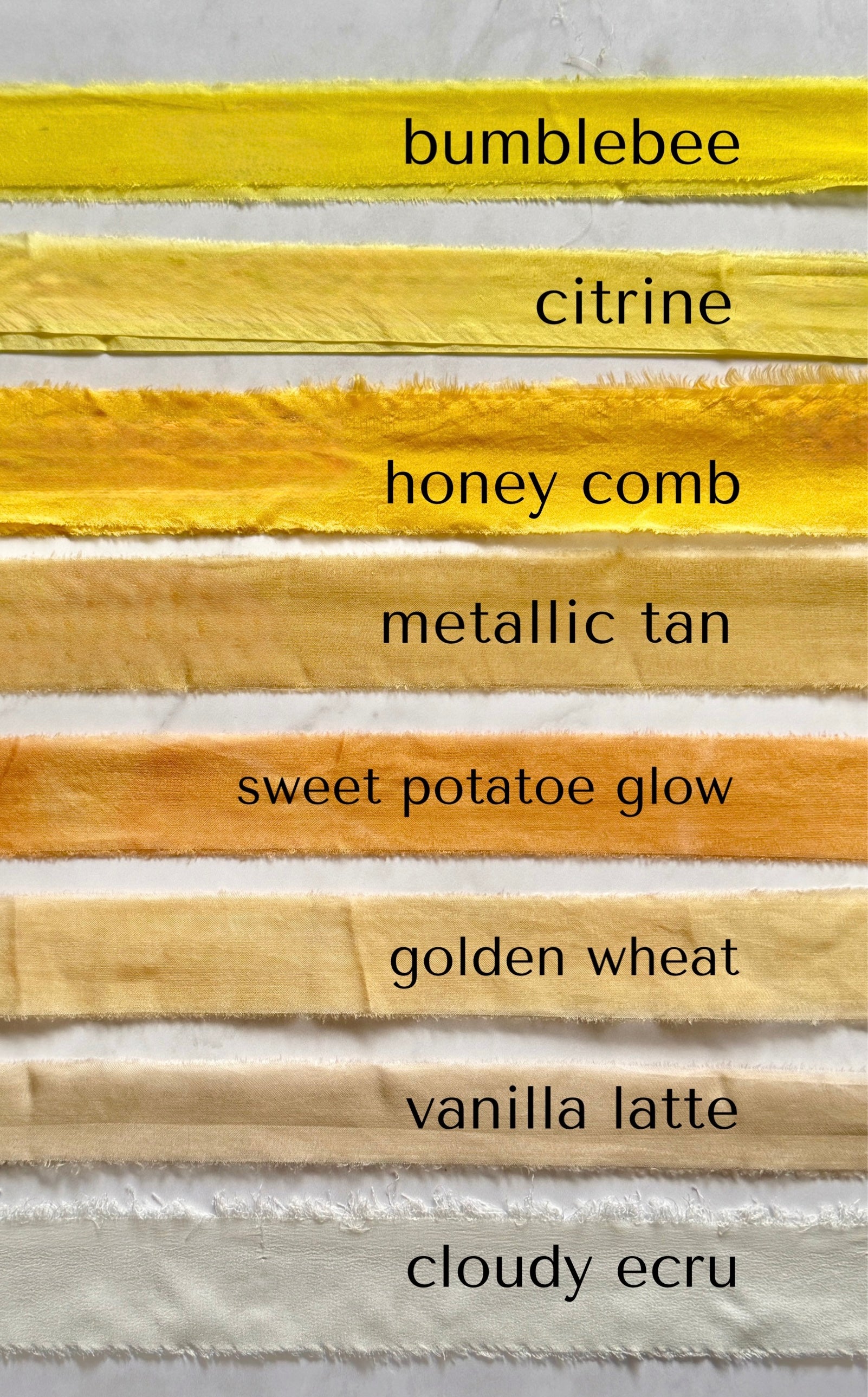 Todos nuestros textiles son teñidos a mano bajo pedido por nuestro pequeño equipo de artesanos en Guadalajara, México. Nuestro tiempo actual de procesamiento en casa para los listones de seda es de 2 a 3 días hábiles + el método de envío que elijas.