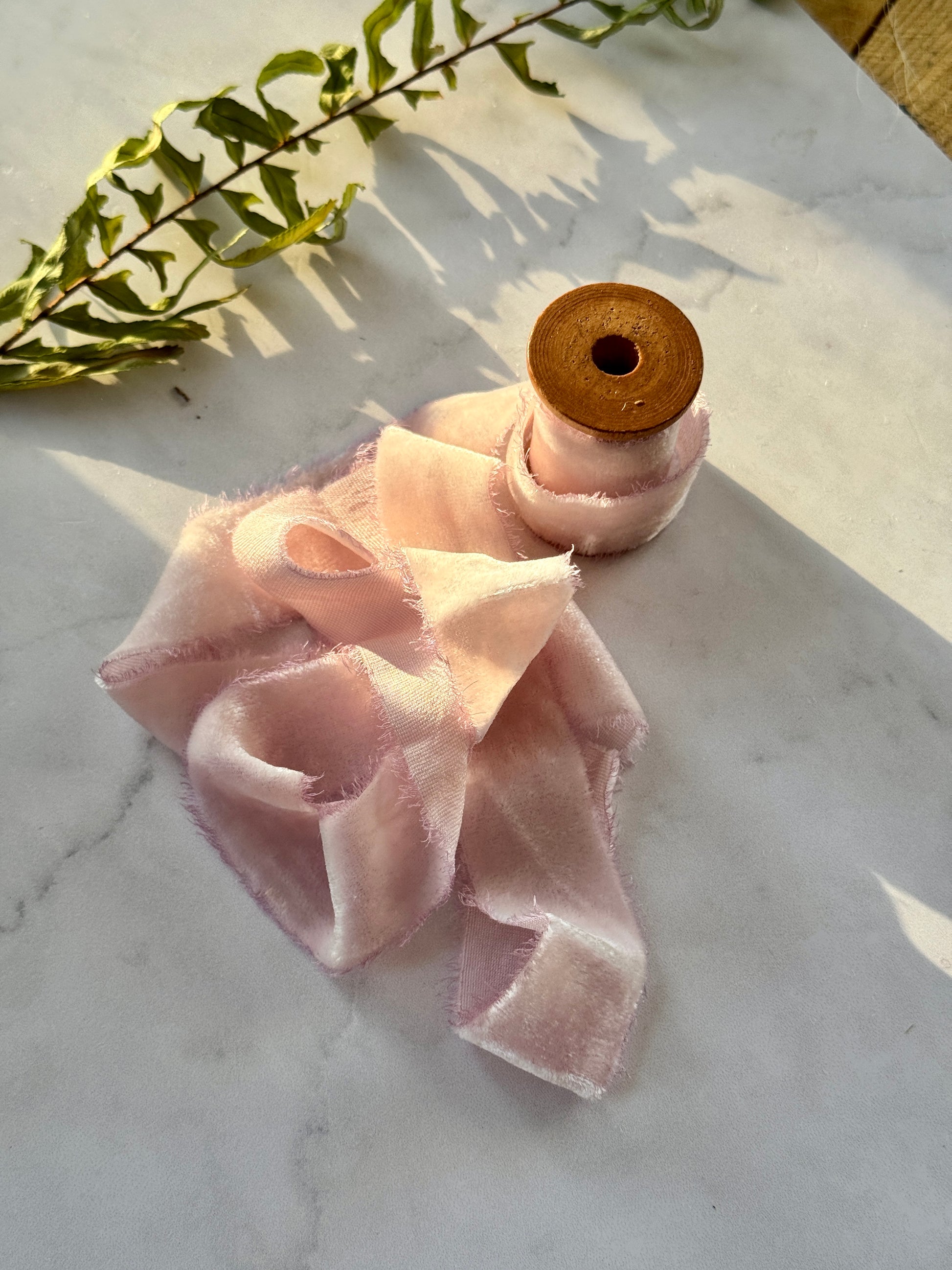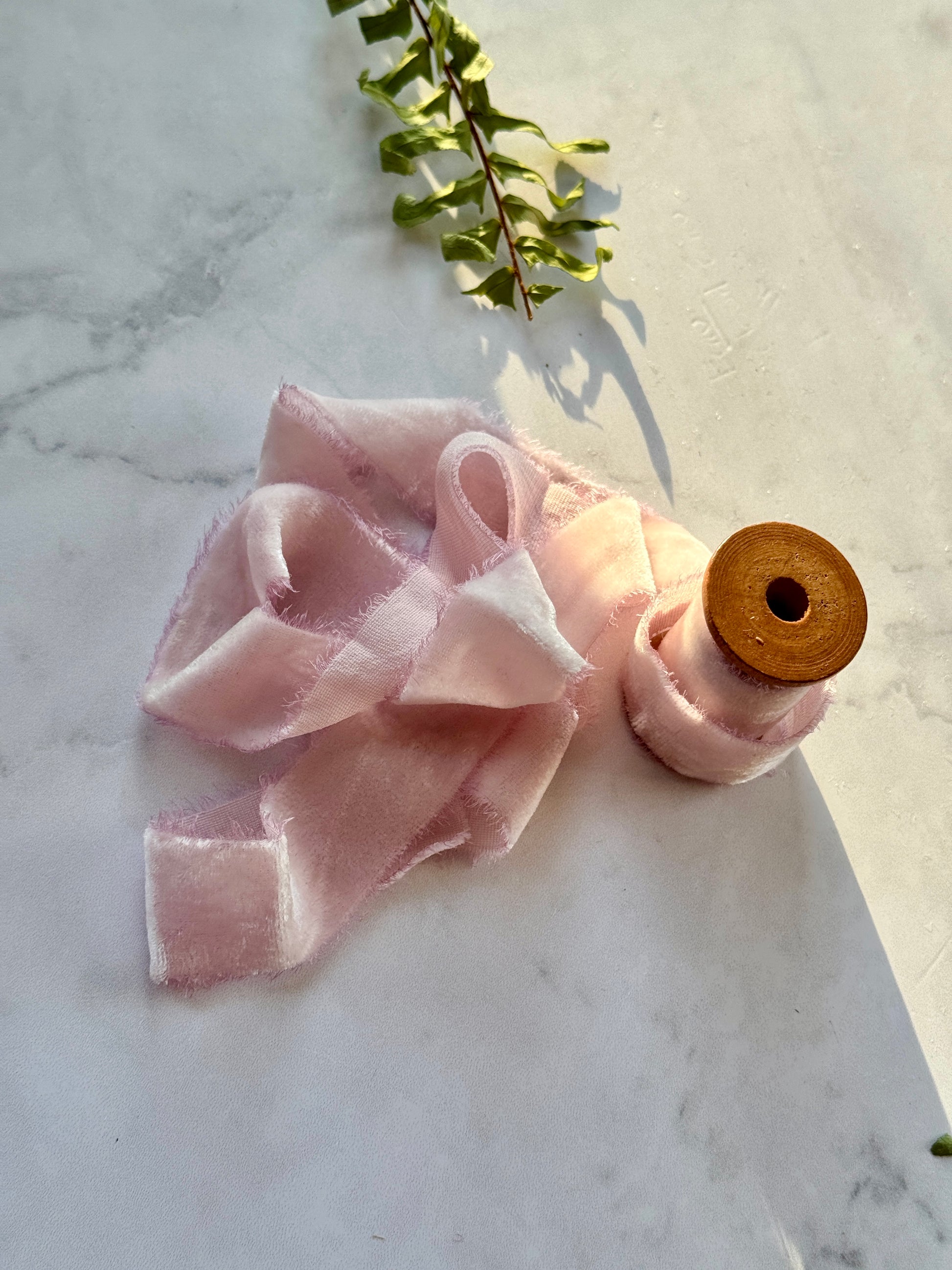 Listón de Seda Terciopelo en color Powder Pink de Silk & Pepper