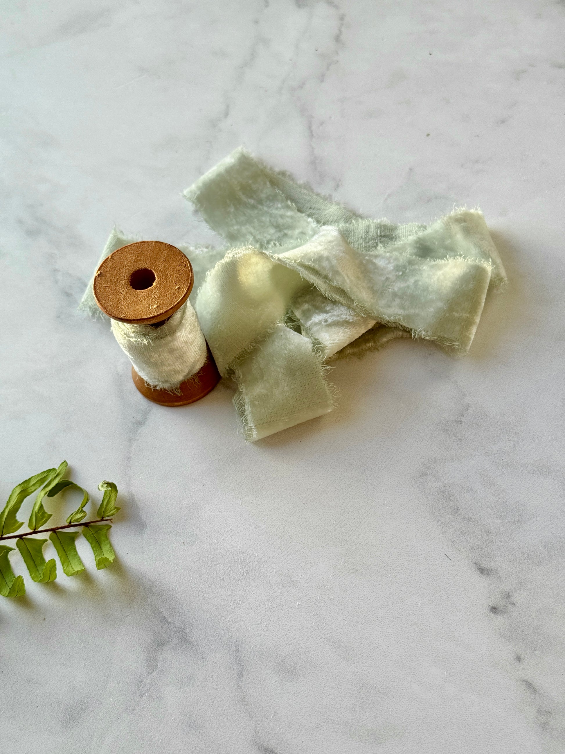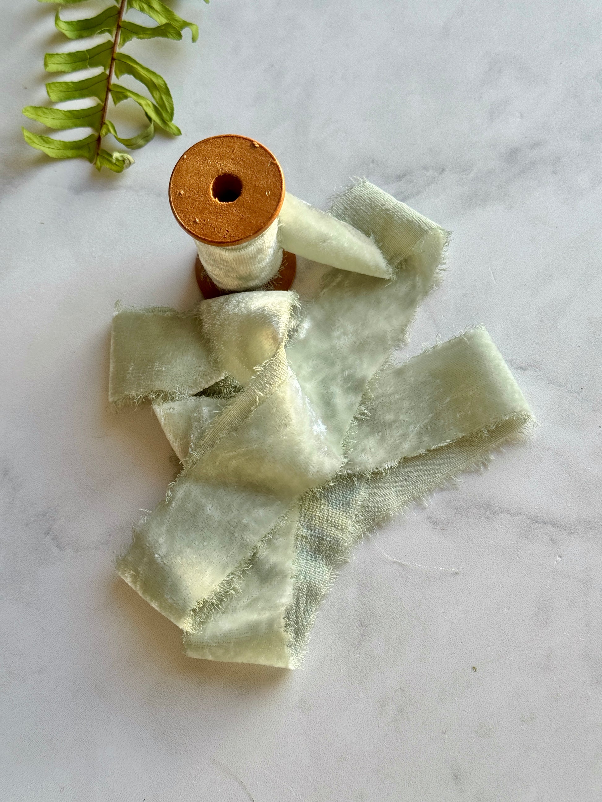 Listón de Seda Terciopelo en color Sage de Silk & Pepper