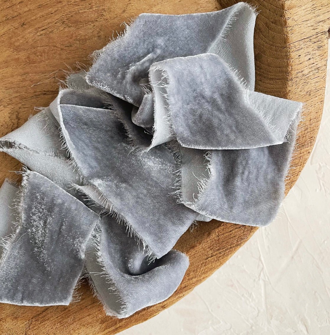 Listón de Seda Terciopelo en Platinum de Silk & Pepper