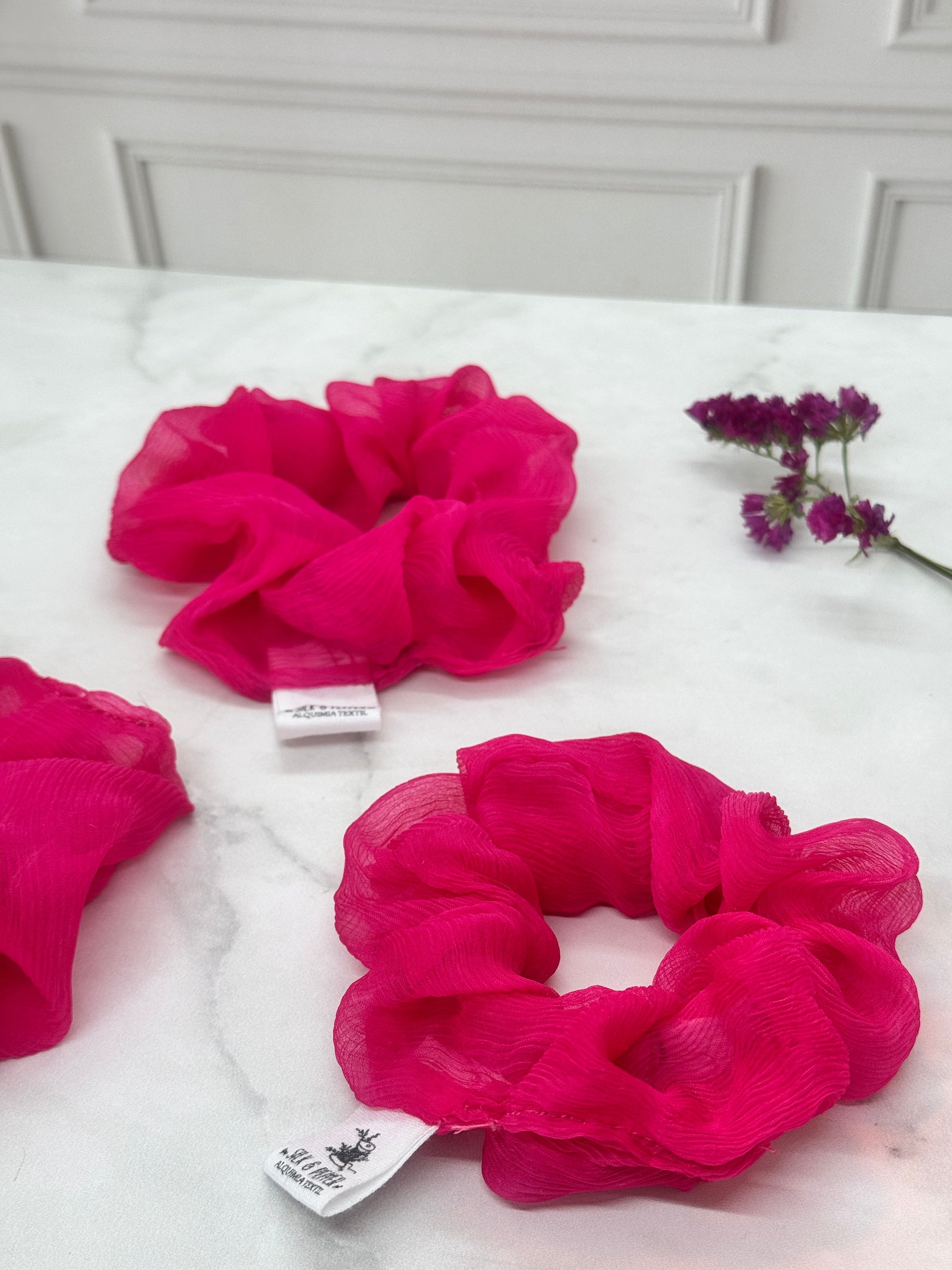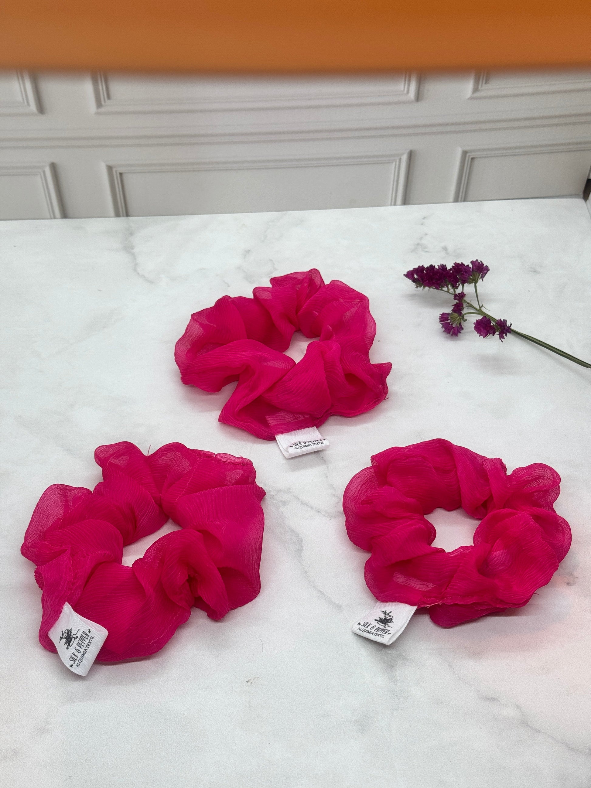 Lujoso Scrunchie de Seda Georgette Chica en Tono Hot Pink